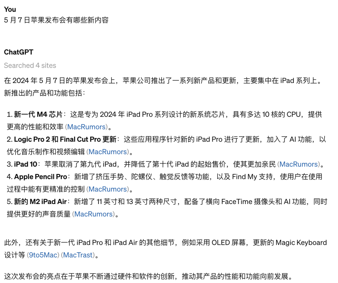 问:5 月 7 日苹果发布会有哪些内容