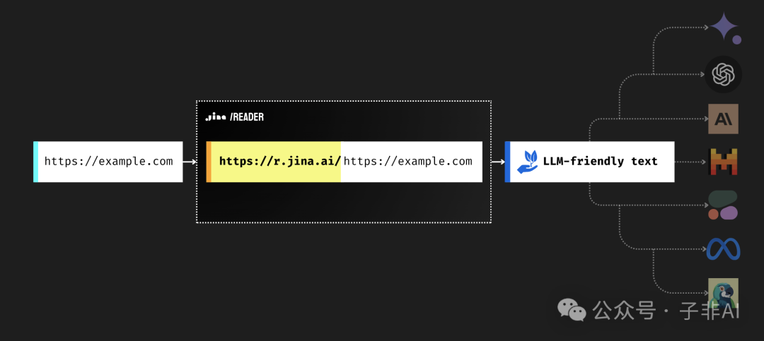 RAG 系统: 在检索增强生成 (RAG) 系统中,Reader 可以用于获取相关网页信息,并将其转换为 LLM 可理解的格式,如同为 RAG 系统提供了强大的信息搜索引擎,从而提高 RAG 系统的准确性和效率。
