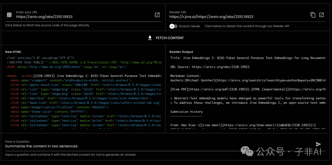 Jina AI Reader 的出现,为 LLM 应用的发展提供了新的动力。它简化了 LLM 获取网页信息的过程,提高了 LLM 应用的效率和准确性,并为开发者提供了更多可能性。随着 Reader 的不断发展,我们可以期待 LLM 在更多领域发挥更大的作用,为我们的生活带来更多便利。