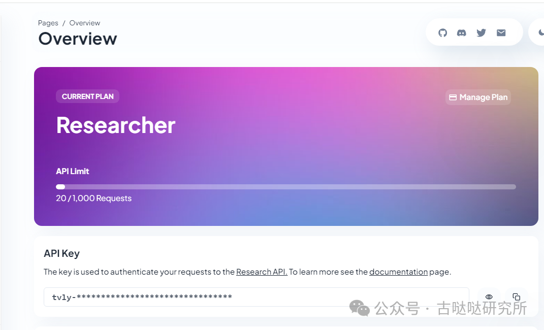 https://app.tavily.com/home到这里注册一个账户获取api key,不要钱
