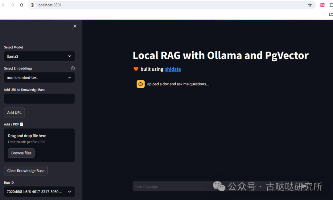 接下来,再来看一看项目中如何使用Ollama和PgVector进行完全本地文档的检索增强生成(RAG)