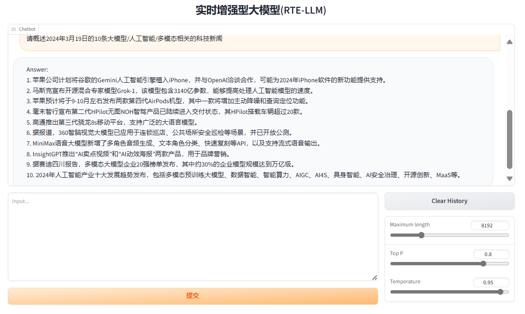 最后给个实时增强型大模型的简单案例,感觉效果不错: