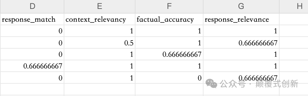 评估结果 评估结果存储在 JSON 文件中。为了更容易比较,将结果转换为 CSV 格式。以下是 UpTrain 的评估结果: