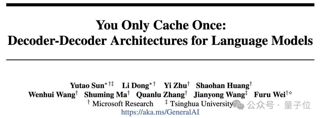 提出Decoder-Decoder新型架构,名为YOCO(You Only Cache Once)。