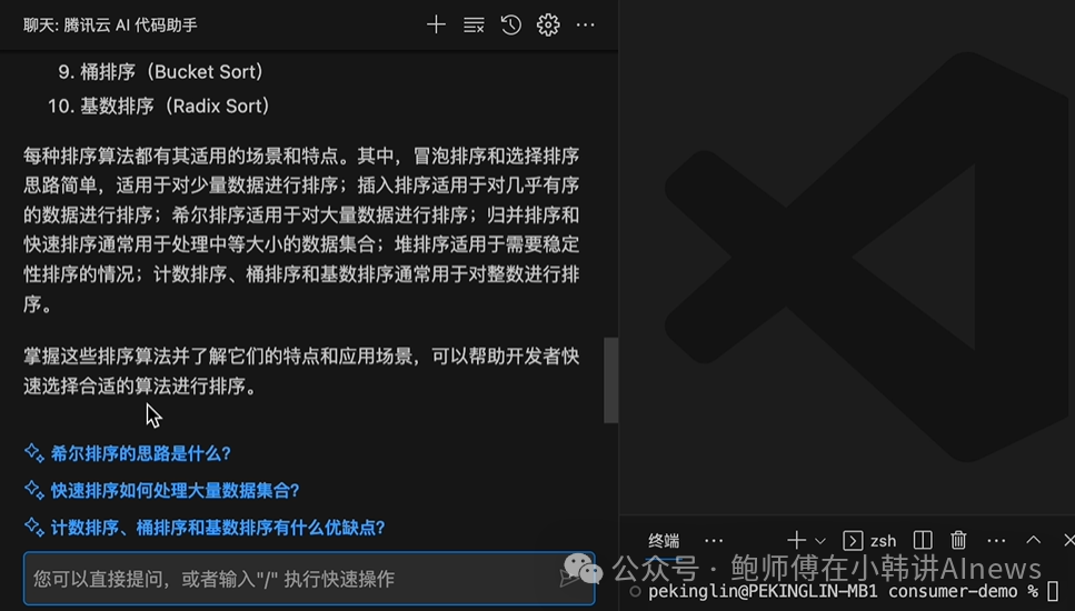 AI代码助手还具有代码补全的功能,包括但不限于: