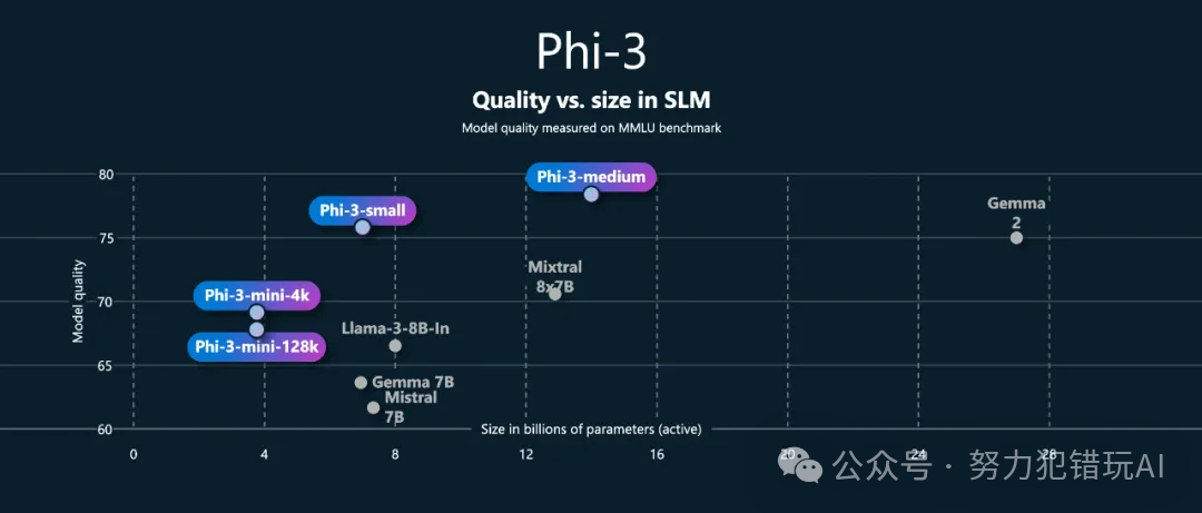 Phi-3 模型家族:除了 Phi-3-vision,微软还发布了其他三个 Phi-3 模型: