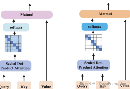 • 将注意力权重矩阵与值矩阵V 相乘,计算加权和,得到最终的输出。