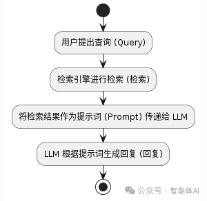 4. 构建调用流程 完整的调用流程为:用户提出查询(Query) -> 检索引擎进行检索(检索) -> 将检索结果作为提示词(Prompt)传递给 LLM -> LLM 根据提示词生成回复(回复)。