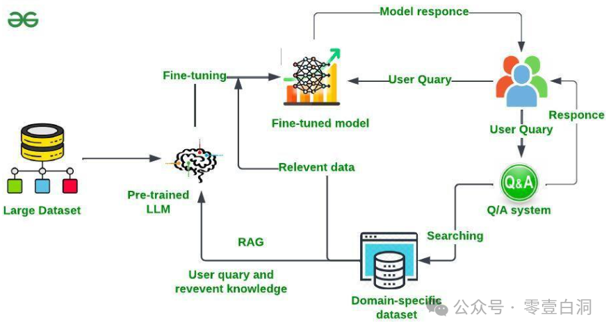 优点: 总结: RAG好处在于数据私有化,但是需要自身实时更新数据源,这种对于企业内部或者隐私数据比较友好。但是回到特定领域上,医学,法学,数学,教育等RAG没有足够多数据进行更新响应。 什么是微调(Fine-tune)? 微调是通过在较小的特定于任务的数据集上进一步训练,使预训练的LLM适应特定的任务或领域。这种方法允许模型学习模式并将其输出与所需的任务或领域保持一致。虽然微调可以提高模型的性能,但它通常无法有效地整合外部知识源或解释推理过程中的检索缺陷。