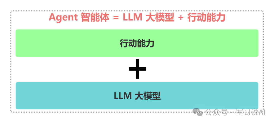 总之,Agent 智能体 = 大语言模型的推理能力 + 使用工具行动的能力。