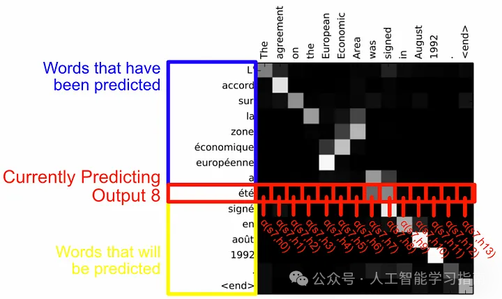 从我的“注意力对齐”文章中可以看到,每一行都是一个概率分布,总和为1,这强制使最重要的事物与其他重要事物相关联。