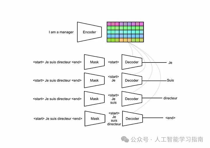 解码器的独特之处在于它采用了“掩码”注意力机制。这一机制与模型的训练方式紧密相关。