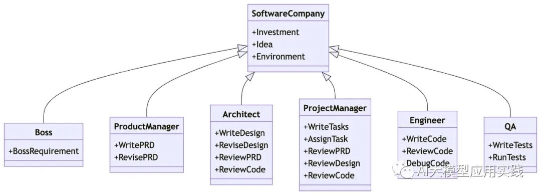 这种多Agent协作型的助手可以借助Multi-Agents框架来简化开发与实现。比如MetaGPT,可以根据自然语言描述的开发任务,组建Agent团队(PM、架构师、程序员、QA等),遵循SOP并最终输出完整软件开发的成果(文档、代码、API说明等)。
