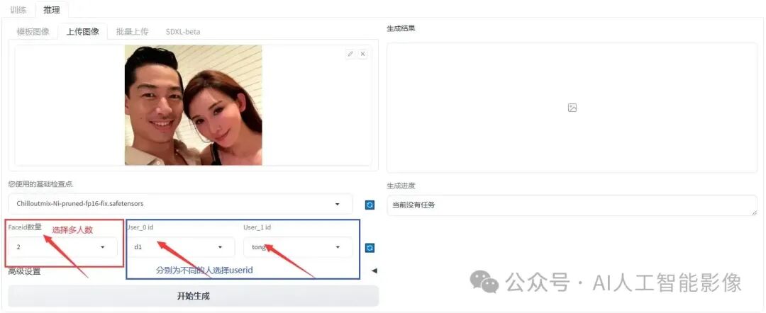 步骤1:转到 EasyPhoto 的设置页面,设置 Faceid数量大于1。