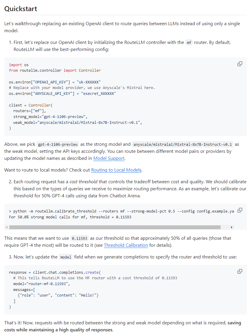 参考: 1.https://github.com/lm-sys/RouteLLM?tab=readme-ov-file 2.https://arxiv.org/pdf/2406.18665