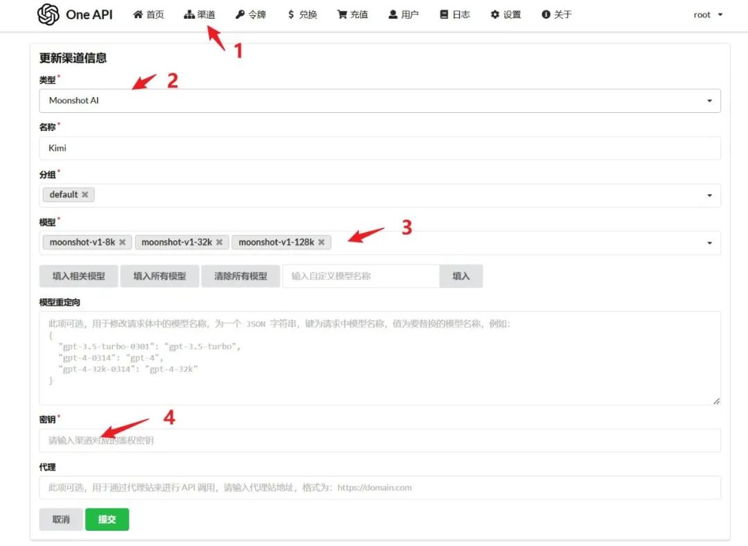 最近一段时间我在使用FastGPT这个项目,这个项目需要我们自己借助One-API去接入其他第三方模型,我想要接入Kimi,就像在Coze平台上使用它一样~