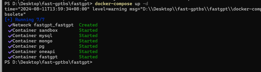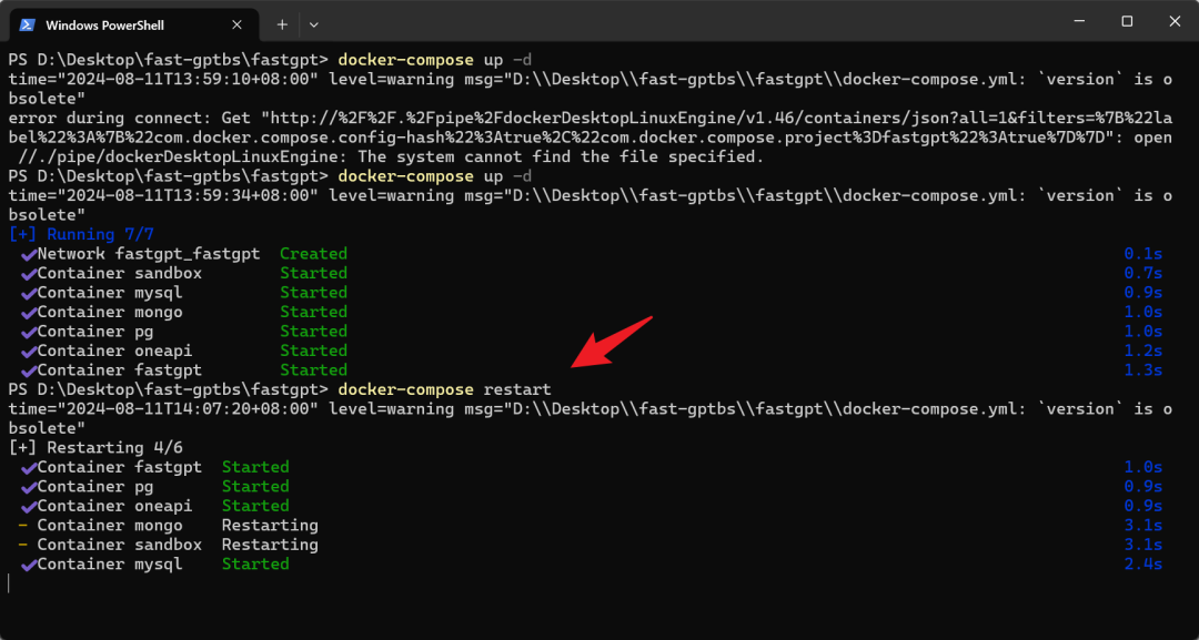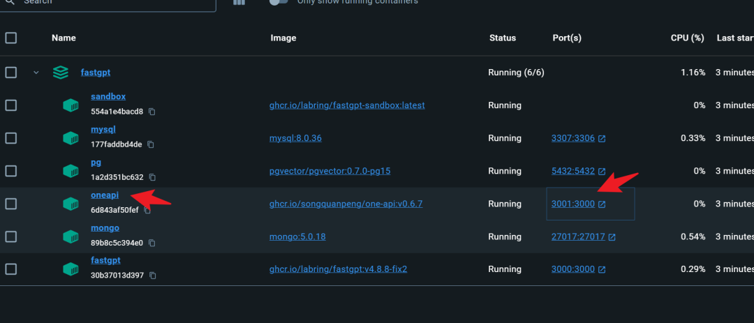 备注:如果启动后发现one-api测试通过,但是fastgpt前端测试不通过,那么请运行