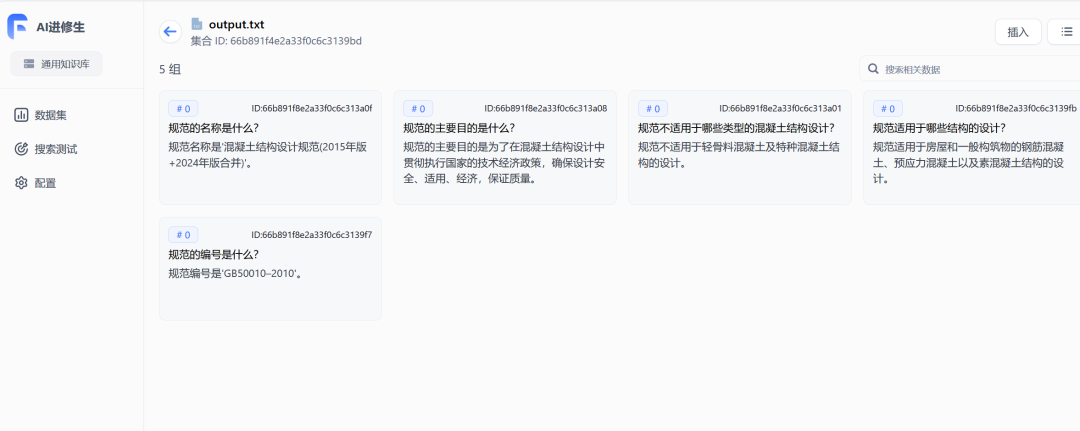 # 继续处理文档with open('dataset.json', 'a', encoding='utf-8') as f:# 打开文件,使用 'a' 模式进行追加写入bar = tqdm(total=len(documents))for idx, doc in enumerate(documents):print(doc.page_content)# 调试API响应print(f"rocessing document chunk {idx + 1}")out = chain.invoke({'text': doc.page_content})print(f"API response for chunk {idx + 1}: {out}")