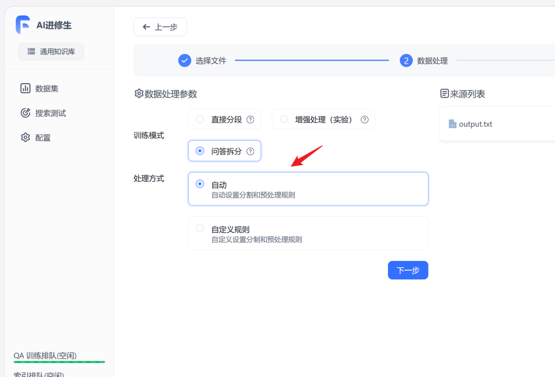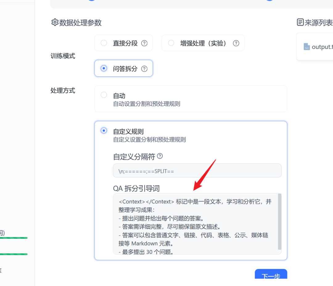 问答拆分的自定义规则是需要你的文本中包含分割符,并且输入拆分引导词: