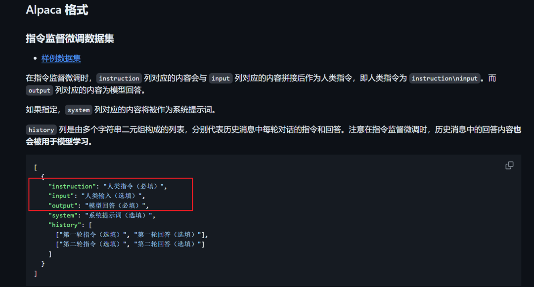 然后我们准备用户提示词(QA_PAIRS_HUMAN_PROMPT),这里主要告诉模型,你希望明确输出的数据格式,比如我们选择Alpaca 格式(省略了system和history):