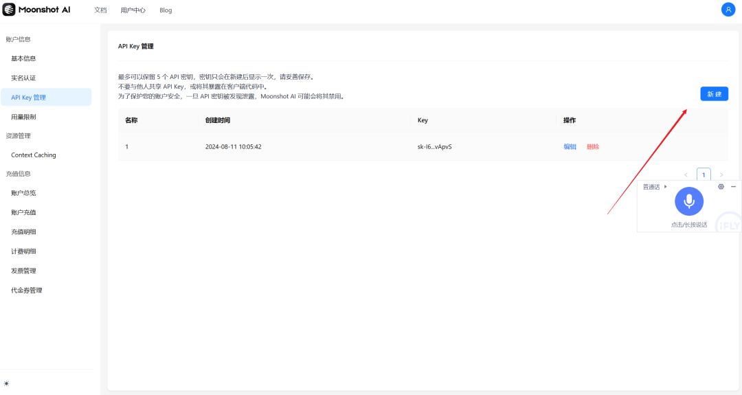 新用户注册送15元免费额度(文末我还会介绍免费获取Kimi API的方式,仅供个人测试):