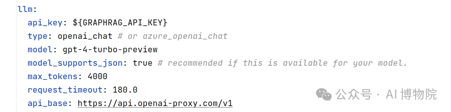 - .env文件中只包含一个GRAPHRAG_API_KEY,用于设置你的LLM API_KEY。