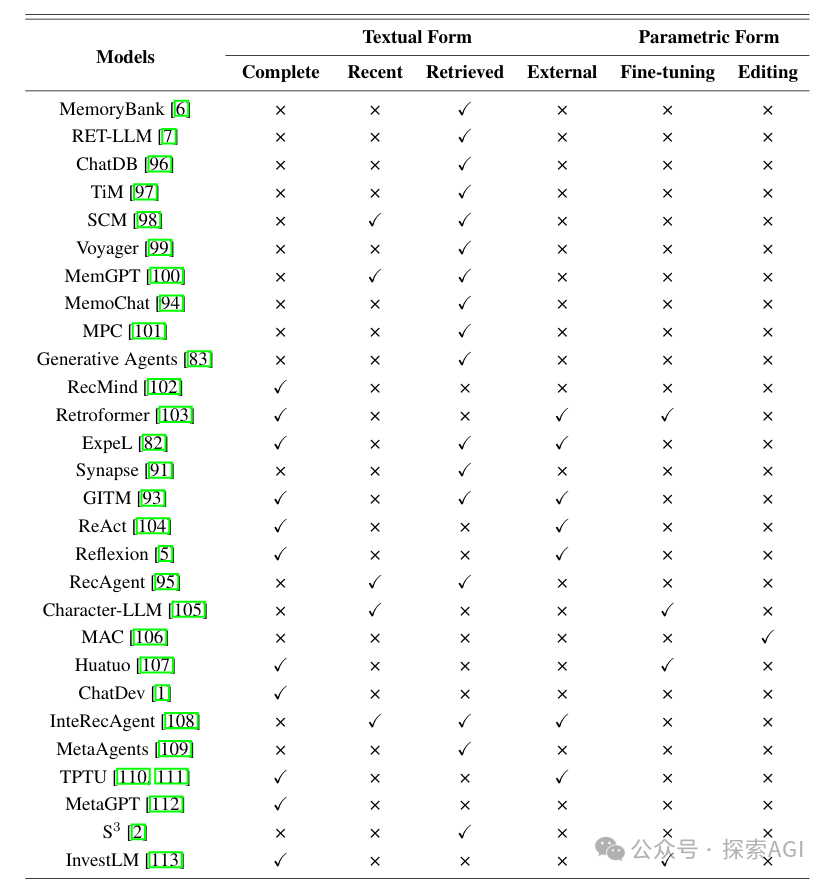 (a)文本形式 分析 文本形式记忆可进一步细分为几种类型: 存储完整的交互信息: ReAct 最近的交互信息 检索到的交互信息和外部知识。
