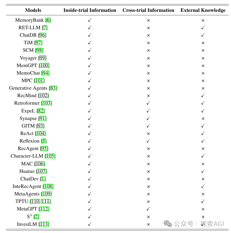 (2)LLM记忆从何而来? 记忆来源: 智能体记忆内容的出处。 三种类型记忆来源: ①内部任务信息(Inside-trial Information): 当前任务执行信息 单个任务或交互过程中收集的数据。仅与当前正在进行的任务有关。 一个对话人物, Agent 要记住上下文信息,以便生成连贯的回应