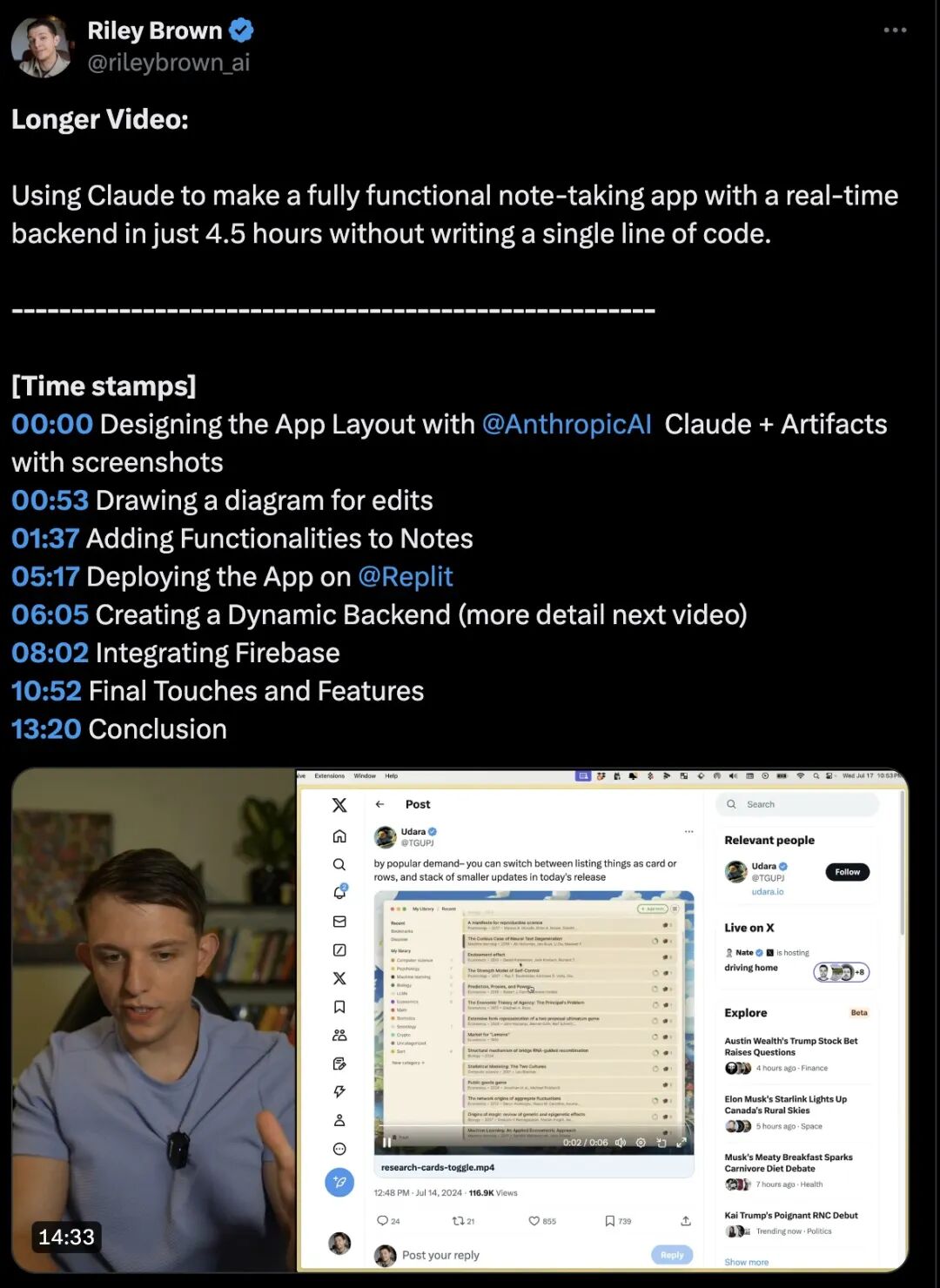 近期我们关注的一位X上的博主,仅用4.5小时,未写下一行代码,仅依靠各种工具,即完成一个简单的记事本程序