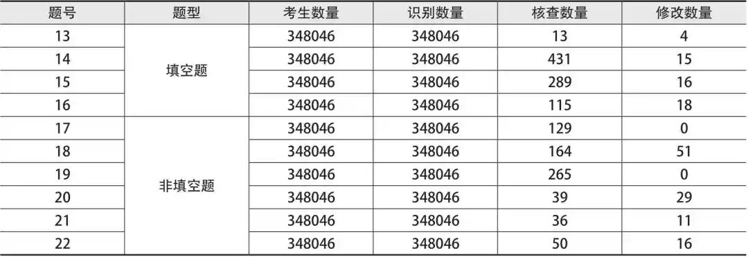 在质检核查环节,汇隽可之AI大模型技术识别出部分存在批阅问题的试卷,并将之提交给人工进行审核。经过人工审核后,部分试卷的分值得以修正。表6是复核修正数据的统计。