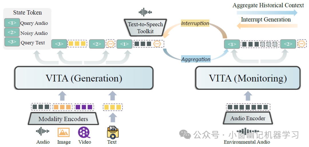 1. 双工部署方案:同时部署两个VITA模型,一个负责生成响应,另一个持续监控环境输入。