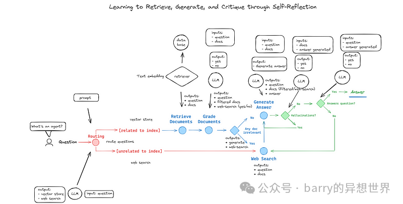ingFang SC", Cambria, Cochin, Georgia, serif;font-size: medium;font-style: normal;font-variant-ligatures: normal;font-variant-caps: normal;font-weight: 400;orphans: 2;text-indent: 0px;text-transform: none;widows: 2;word-spacing: 0px;-webkit-text-stroke-width: 0px;white-space: normal;text-decoration-thickness: initial;text-decoration-style: initial;text-decoration-color: initial;">想过如何让你的大型语言模型(LLMs)更聪明、更可靠吗?想象一个不仅能检索信息,还能自我纠正以提供准确响应的系统。欢迎来到具有自我纠正功能的高级检索增强生成(RAG)的世界。ingFang SC", Cambria, Cochin, Georgia, serif;font-size: medium;font-style: normal;font-variant-ligatures: normal;font-variant-caps: normal;font-weight: 400;orphans: 2;text-indent: 0px;text-transform: none;widows: 2;word-spacing: 0px;-webkit-text-stroke-width: 0px;white-space: normal;text-decoration-thickness: initial;text-decoration-style: initial;text-decoration-color: initial;">在本文中,我们将探讨使用 LangGraph 构建自适应和自我反思 RAG 应用程序的过程。目标是构建一个能够自我批评以防止幻觉的系统,集成强大的代理,并利用 GROQ 减少 LLM 响应的延迟。ingFang SC", Cambria, Cochin, Georgia, serif;font-style: normal;font-variant-ligatures: normal;font-variant-caps: normal;letter-spacing: normal;orphans: 2;text-align: start;text-indent: 0px;text-transform: none;widows: 2;word-spacing: 0px;-webkit-text-stroke-width: 0px;white-space: normal;text-decoration-thickness: initial;text-decoration-style: initial;text-decoration-color: initial;">理解 RAGingFang SC", Cambria, Cochin, Georgia, serif;font-size: medium;font-style: normal;font-variant-ligatures: normal;font-variant-caps: normal;font-weight: 400;orphans: 2;text-indent: 0px;text-transform: none;widows: 2;word-spacing: 0px;-webkit-text-stroke-width: 0px;white-space: normal;text-decoration-thickness: initial;text-decoration-style: initial;text-decoration-color: initial;">RAG 将信息检索的能力与文本生成相结合,增强了 LLM 的功能。ingFang SC", Cambria, Cochin, Georgia, serif;font-size: medium;font-style: normal;font-variant-ligatures: normal;font-variant-caps: normal;font-weight: 400;orphans: 2;text-indent: 0px;text-transform: none;widows: 2;word-spacing: 0px;-webkit-text-stroke-width: 0px;white-space: normal;text-decoration-thickness: initial;text-decoration-style: initial;text-decoration-color: initial;">想象一下一个 LLM,它可以与您的自定义数据进行交互并检索任何类型的信息。无论是查询您的 SQL 数据库、从 PDF 文档中提取数据,还是从网络中筛选非结构化数据,RAG 都使这一切成为可能。ingFang SC", Cambria, Cochin, Georgia, serif;font-style: normal;font-variant-ligatures: normal;font-variant-caps: normal;letter-spacing: normal;orphans: 2;text-align: start;text-indent: 0px;text-transform: none;widows: 2;word-spacing: 0px;-webkit-text-stroke-width: 0px;white-space: normal;text-decoration-thickness: initial;text-decoration-style: initial;text-decoration-color: initial;">此项目的技术栈:ingFang SC", Cambria, Cochin, Georgia, serif;font-size: medium;font-style: normal;font-variant-ligatures: normal;font-variant-caps: normal;font-weight: 400;orphans: 2;text-indent: 0px;text-transform: none;widows: 2;word-spacing: 0px;-webkit-text-stroke-width: 0px;white-space: normal;text-decoration-thickness: initial;text-decoration-style: initial;text-decoration-color: initial;">LangGraph:用于构建自适应 RAG 的框架。ingFang SC", Cambria, Cochin, Georgia, serif;font-size: medium;font-style: normal;font-variant-ligatures: normal;font-variant-caps: normal;font-weight: 400;orphans: 2;text-indent: 0px;text-transform: none;widows: 2;word-spacing: 0px;-webkit-text-stroke-width: 0px;white-space: normal;text-decoration-thickness: initial;text-decoration-style: initial;text-decoration-color: initial;">Mixtral-8x7b: 用于生成响应的 LLM。ingFang SC", Cambria, Cochin, Georgia, serif;font-size: medium;font-style: normal;font-variant-ligatures: normal;font-variant-caps: normal;font-weight: 400;orphans: 2;text-indent: 0px;text-transform: none;widows: 2;word-spacing: 0px;-webkit-text-stroke-width: 0px;white-space: normal;text-decoration-thickness: initial;text-decoration-style: initial;text-decoration-color: initial;">GROQ:一种通过减少延迟来加速 LLM 响应推理的技术。ingFang SC", Cambria, Cochin, Georgia, serif;font-size: medium;font-style: normal;font-variant-ligatures: normal;font-variant-caps: normal;font-weight: 400;orphans: 2;text-indent: 0px;text-transform: none;widows: 2;word-spacing: 0px;-webkit-text-stroke-width: 0px;white-space: normal;text-decoration-thickness: initial;text-decoration-style: initial;text-decoration-color: initial;">Tavily:一种基于代理的动态信息检索工具,用于执行网络搜索。 Google Embeddings:用于生成文本嵌入。 Chroma:一个用于高效数据管理的向量存储数据库。 工作流程此流程图提供了一个具有自我纠正能力的自适应RAG系统的详细可视化。以下是每个组件及整体过程的逐步解释: