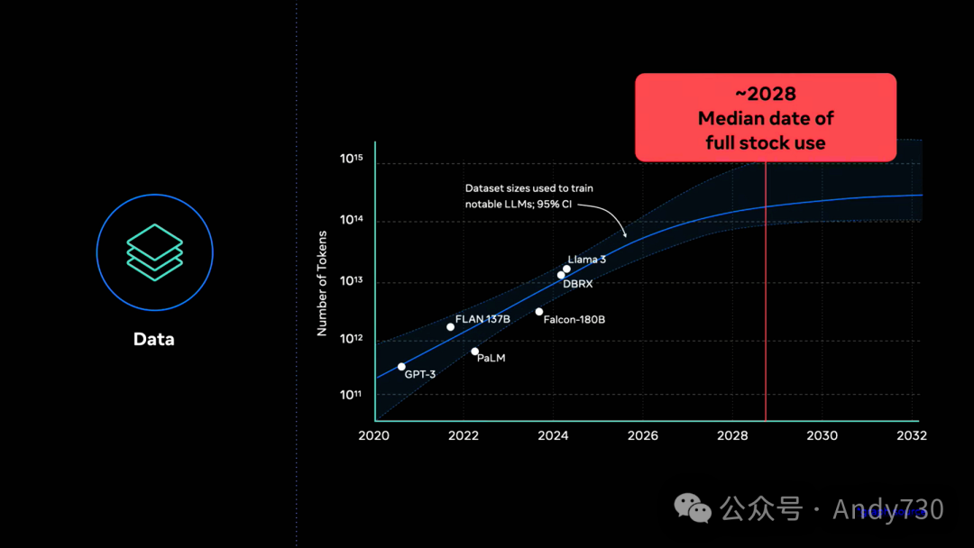 • 数据:训练模型所需的数据量巨大且不断增长,数据可能成为瓶颈。未来可能需要依赖合成数据和更高效的数据处理技术。