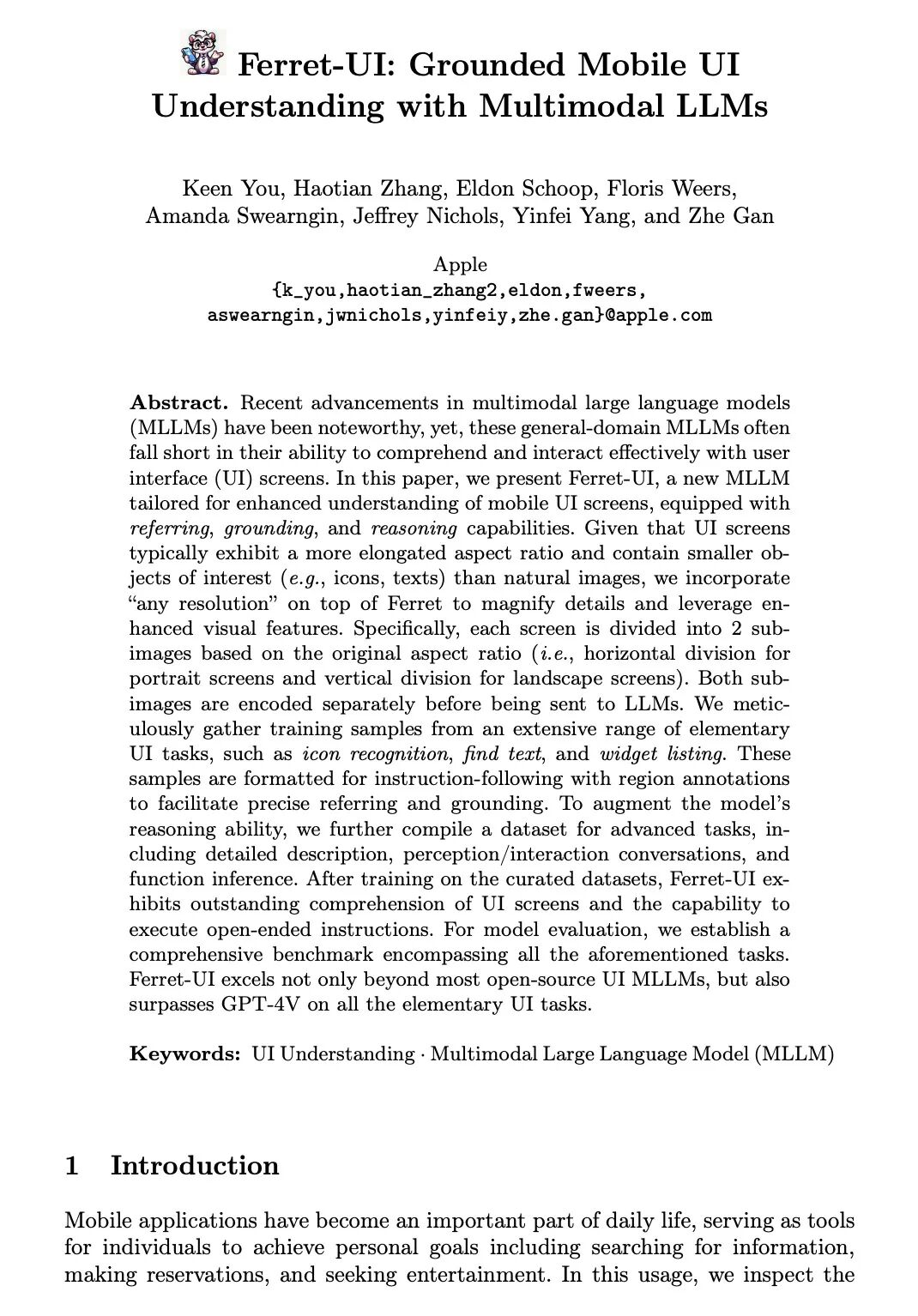 《Ferret-UI: Grounded Mobile UI Understanding with Multimodal LLMs》
