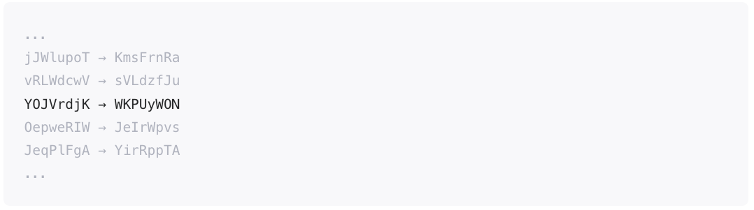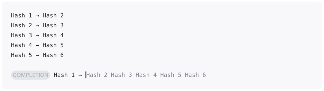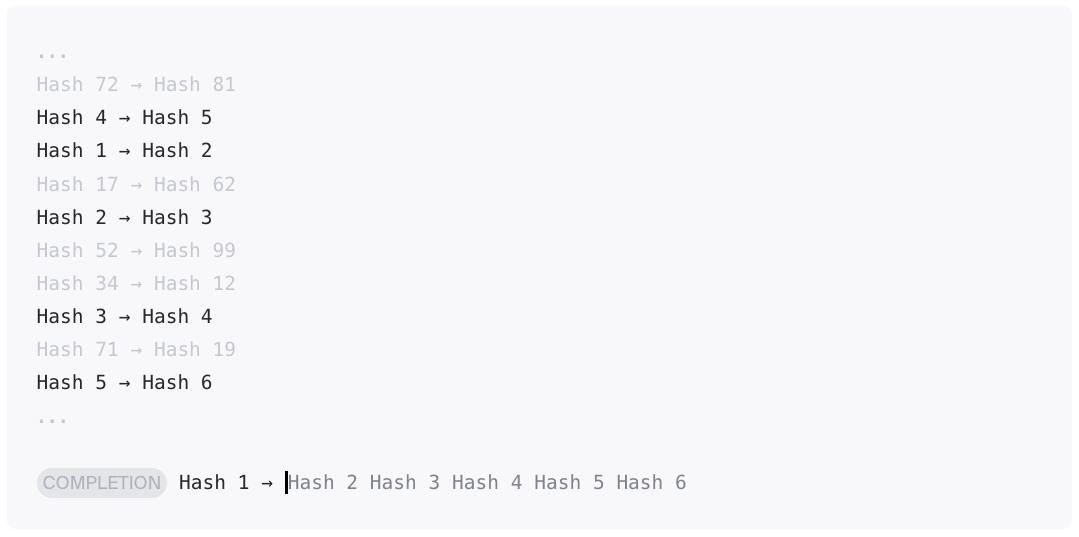 Magic 因此设计了 HashHop 技术,一个新的评估上下文长度和可靠性的体系。 但哈希是随机的,所以导致不可压缩,要求模型能够始终存储和检索给定上下文大小的最大可能信息内容。 先是提出一个使用哈希对进行训练的模型:
