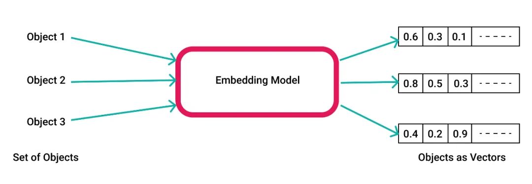这些向量不仅仅是随机的数字,而是通过学习得到的,使得在某些特定的任务上,它们能够很好的表示数据之间的相似性和关系。例如,相似的词(如“猫”和“狗”)在向量空间中会比较接近,而不相似的词(如“猫”和“汽车”)则会比较远。