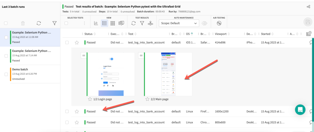 测试完成之后,可以通过点击控制台上的see details里面的链接进入到applitools eye捕获到的测试细节,特别是对UI的捕捉的细节。具体如下图: