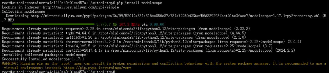 首先安装modelscope