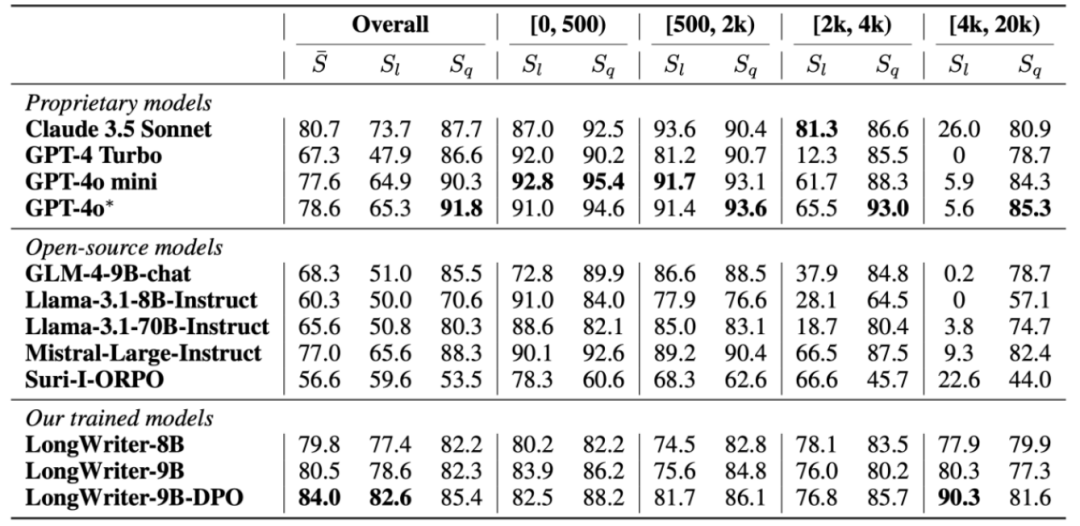 LongBench-Write 评估基准更加侧重于衡量长输出的质量以及输出的长度。通过这一评估基准,我们可以深入了解 LongWriter 模型在生成较长文本时的准确性、连贯性和逻辑性。它不仅关注生成文本的长度是否能够达到较高的水平,还注重评估文本的质量,确保生成的内容具有足够的价值和可读性。在使用 LongBench-Write 进行评估时,我们可以对 LongWriter 模型的长文本生成能力进行全面的分析和比较,从而更好地了解其在不同场景下的应用潜力。