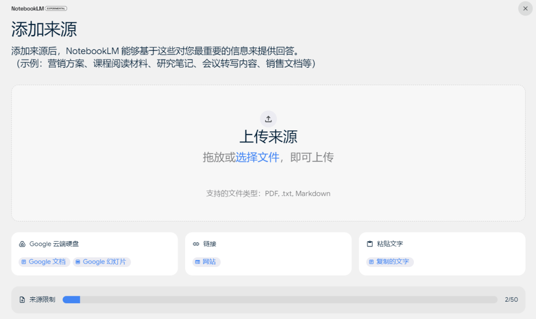 现在NotebookLM支持上传图片的PDF类型内容了!