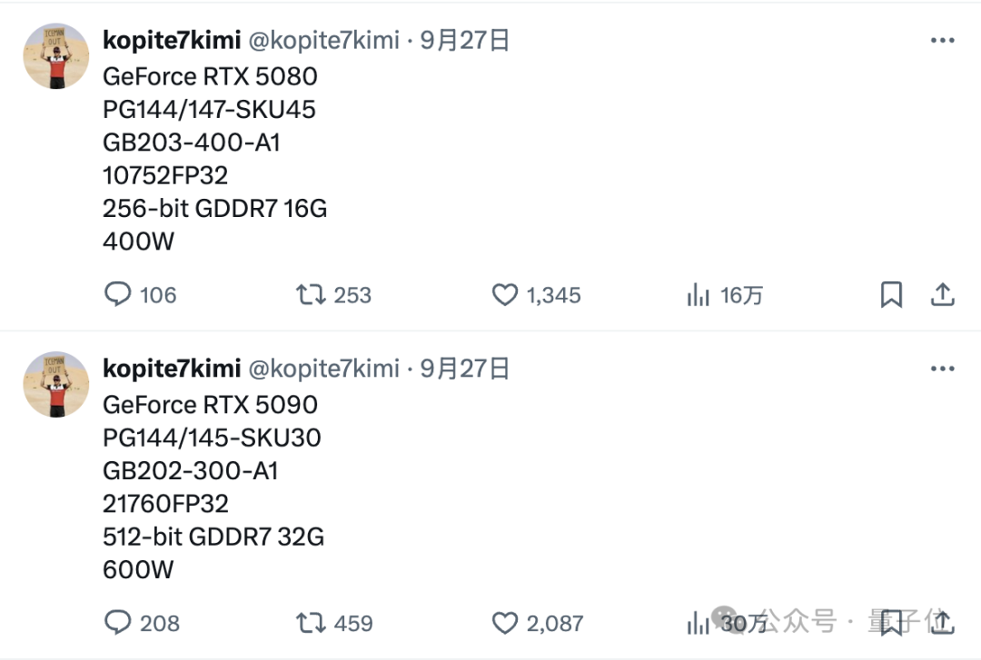 5090和5080的爆料者,在X上叫kopite7kimi,他时业界非常著名的爆料人士,被Gizmodo等媒体认为是英伟达爆料者中消息最可信的。