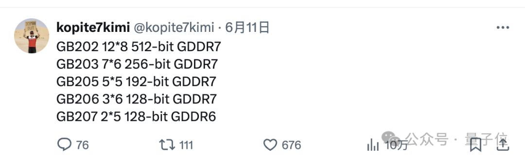 还是据kopite7mimi的爆料,GB202共有96个TPC,支持512bit GDDR7显存,GB203的TPC数量则为42个,支持的GDDR7显存则为256bit。