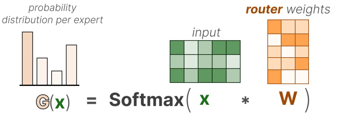 路由器(或门控网络)负责为每个输入选择最合适的专家: