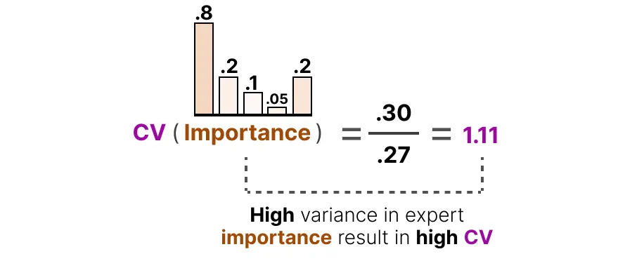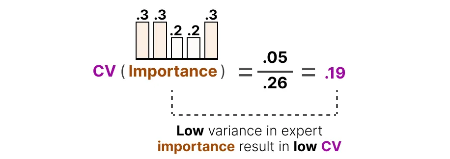相反,如果所有专家的得分都相似,则 CV 值较低(这是我们期望的情况):