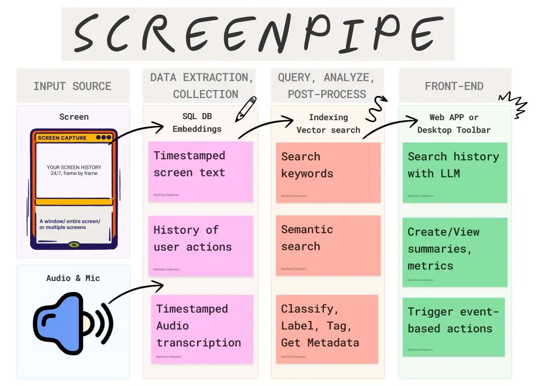 使用场景Screenpipe可以用于多种场景,包括但不限于: - 个人数据记录:个人可以录制自己的屏幕和音频,用于记录和回顾。