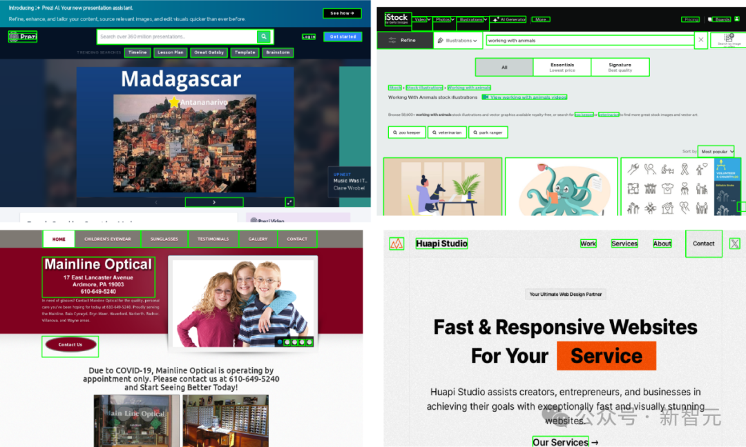 为了构造数据集,研究人员首先从网络上公开可用的网址中提取了10万个均匀样本,并从每个URL的DOM树中收集网页的可交互区域的边界框。