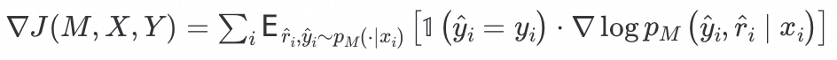 有趣的是,STaR方法可以看作是一种强化学习风格的策略梯度目标,模型M可以看作是离散隐变量模型: ,这是因为M先生成了一个隐式过程 r 然后才预测了最终答案 y。