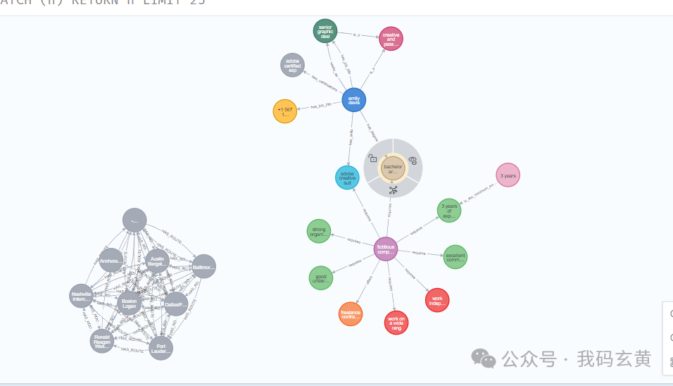 可以看到简历和工作需求的匹配关系连接。这样子我们可以灵活的运用 iText2KG 框架做图形关系和实体的增量。