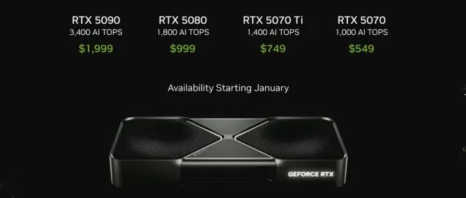 其中 RTX 5090 和 RTX 5080 将于 1 月 30 日率先上市,RTX 5070 Ti 和 RTX 5070 将于 2 月紧随其后。