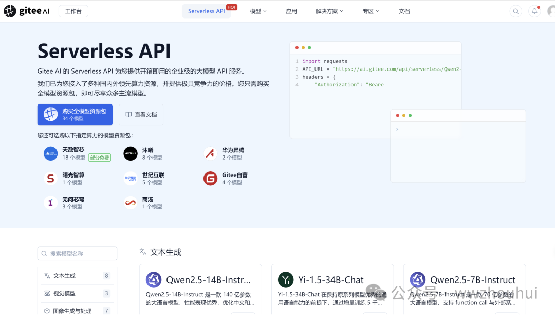 什么是Gitee AIGitee AI是一种无需管理服务器的 API,旨在为 AI 开发者提供开箱即用的大模型推理服务。这种 API 允许开发者通过简单的注册和配置即可使用,无需关心底层基础设施的管理和维护,从而降低了技术门槛和成本。 Gitee AI 架构的核心思想是让开发者专注于业务逻辑,而不是底层的服务器管理。这种架构模式特别适用于需要快速扩展和按需付费的应用场景。在 Gitee 平台上,Gitee AI可以通过简单的操作创建和管理,支持多种功能层 API,如对话、文生图、语音识别等 Gitee AI 地址https://ai.gitee.com/serverless-api